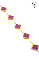 Bracelet Type: Van Cleef ZeroBracelet Count: Single LayerMetal Color: GoldCharms: 5 Van Cleef Shell CharmsCharm Length: 1 cm (1.5 cm spacing between each charm)Shell Colors: Gold, Pink, Fuchsia, Blue, Pepsi Blue, Mint Green, Sky Blue, Striped...