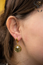 Metal Shape: Circular with a raised sun, mother-of-pearl, and stars
