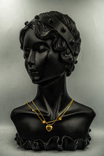 Pendant: The design features hearts; the first layer has a Zero chain with gold Pompeii hearts, and the second layer has a Mouse Tail chain with a Pompeii heart