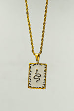 Pendant: The design features wild animal shapes, consisting of a snake inside a rectangular frame with a white enamel background