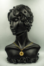 Pendant: The design features a heart shape emitting rays inside a circular frame with a white enamel background