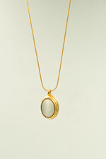 Design: The pendant features a white stone within an oval frame