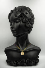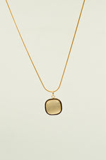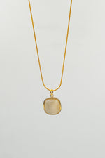 Design: The design features a pendant in the shape of a white stone within a square frame